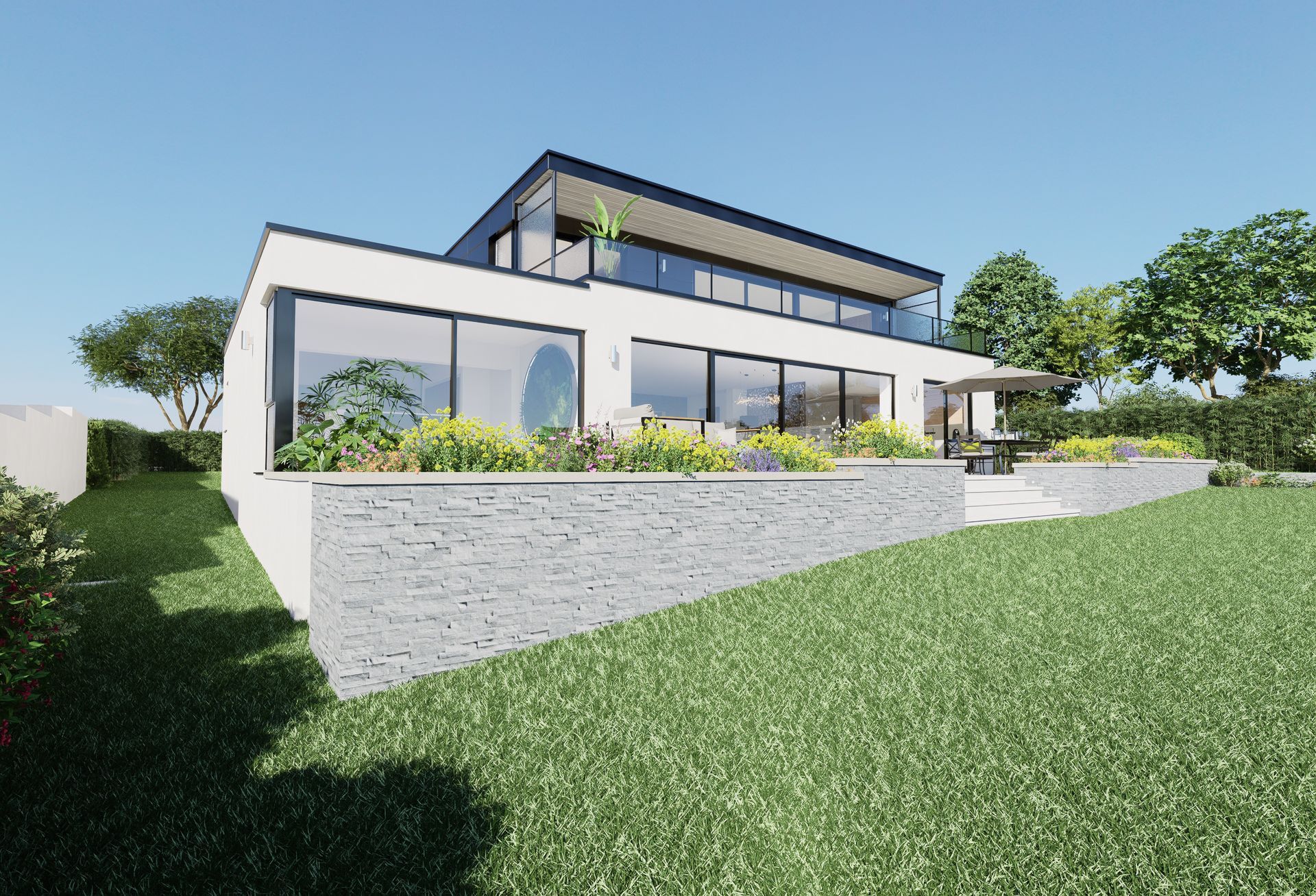 Our client wished to extend and remodel their existing bungalow, adding a first floor to the property and extending to the east to maximise views out to the garden and towards the coastline and sea below.