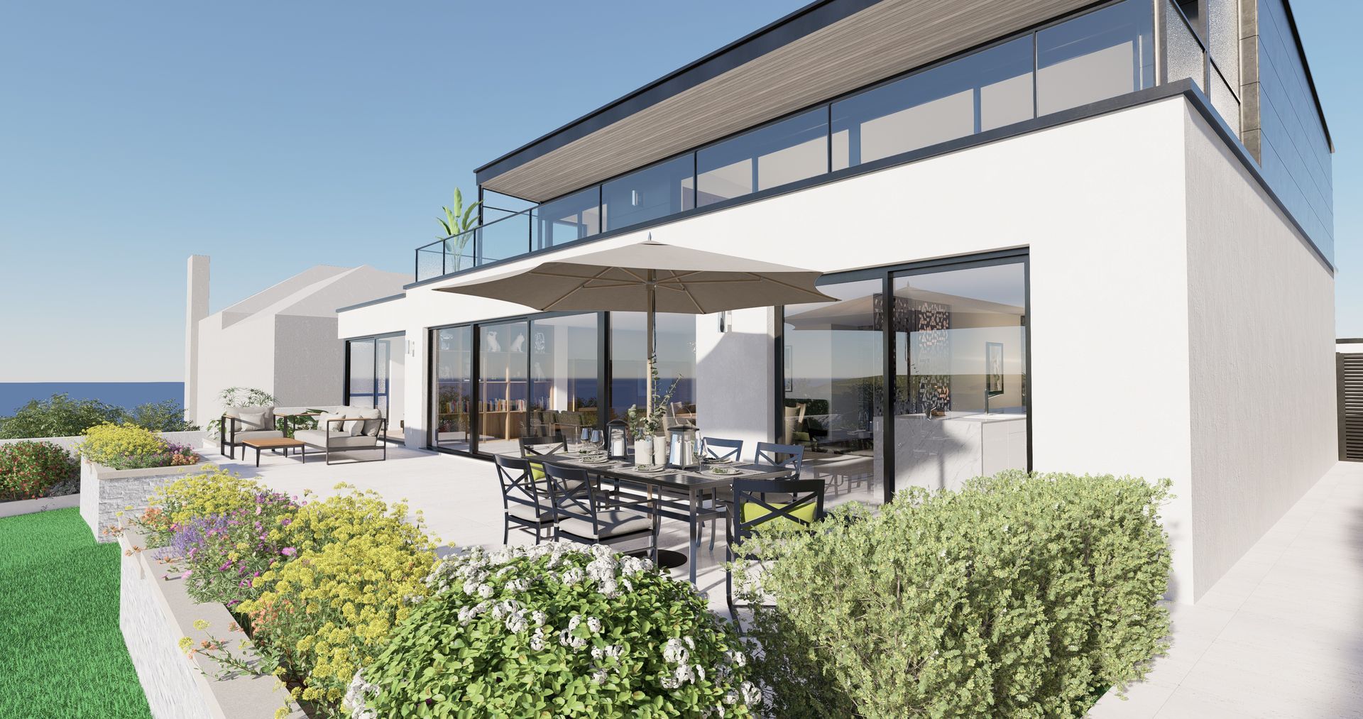 Our client wished to extend and remodel their existing bungalow, adding a first floor to the property and extending to the east to maximise views out to the garden and towards the coastline and sea below.